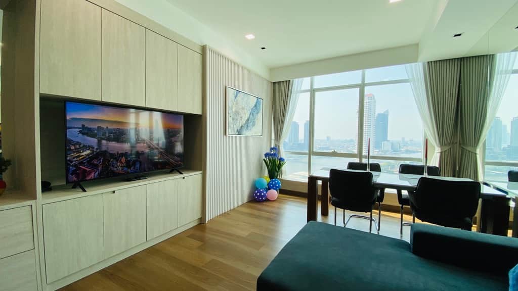 Superb views of the Chaophraya River towards Asiatique can be seen both from the Lounge and Bedroom.